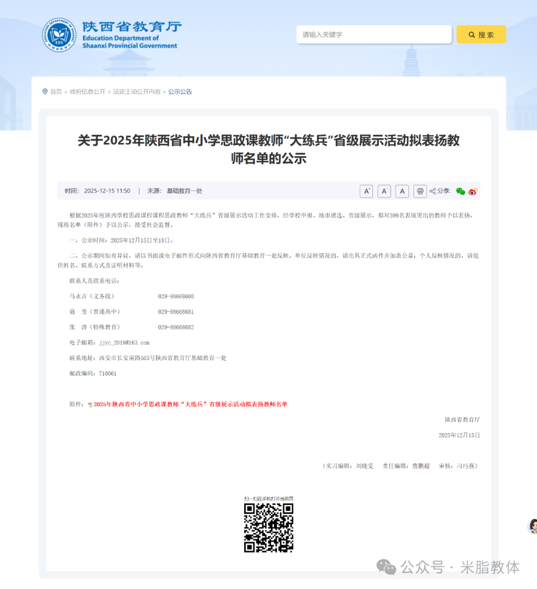 近日,在2025年陕西省中小学思政课教师“大练兵“省级展示活动中,我县豆慧荣老师荣获全省课程思政小学组一等奖,石倍萍老师荣获全省思政课程小学组一等奖,田甜老师荣获全省思政课程高中组二等奖。