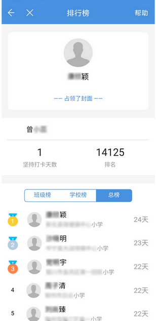 打卡天数最多的学生将排在前面。打卡天数相同的以最后一天打卡时间排序,最先打卡的排在前面。