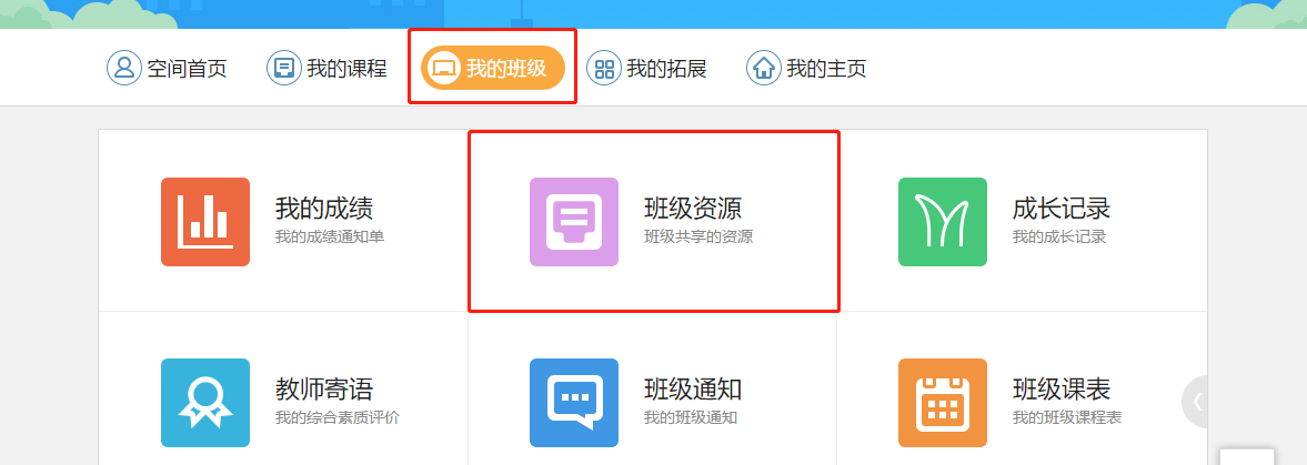 班级资源:学生账号登录当地教育云平台,可在“我的班级”—“班级资源”中里看到班级共享的资源;