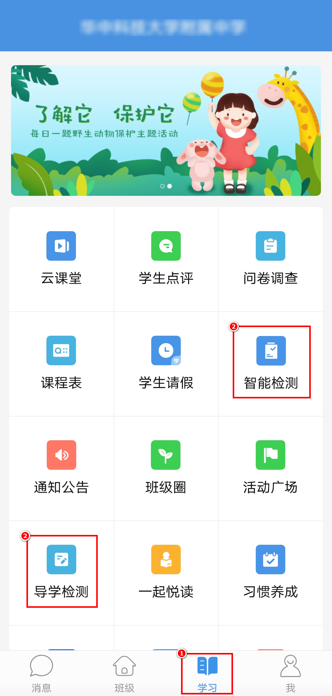 方法二:学生在手机端安装“人人通空间APP”,在“学习”-“导学检测”或“智能检测”模块去作答。