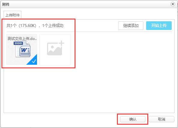 第四步:上传成功后点击“确认”即可完成文件插入。