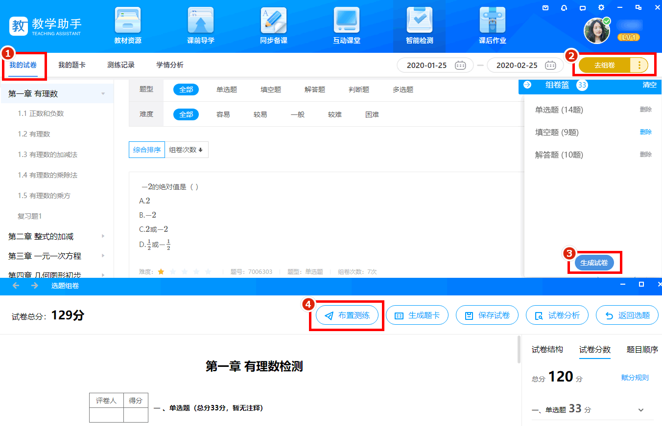 登录教学助手PC端通过组卷方式发布智能检测